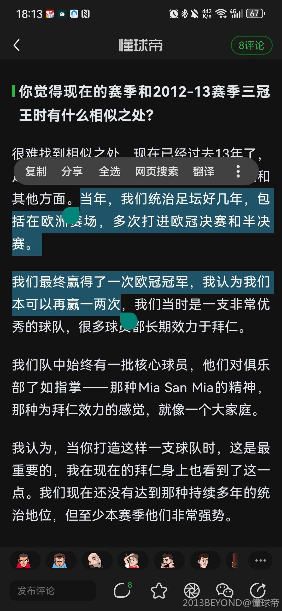 我们队中始终有一批核心球员,他们对俱乐部了如指掌——那种Mia San Mia的精神,那种为拜仁效力的感觉,就像一个大家庭。