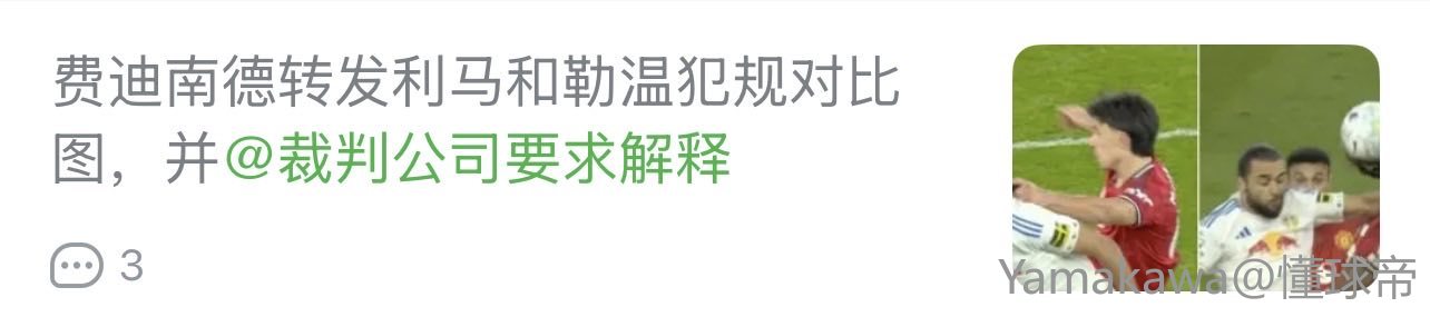 扫描下载懂球帝首页>动态> 费迪南德转发利马和勒温犯规对比图,并@裁判公司要求解释