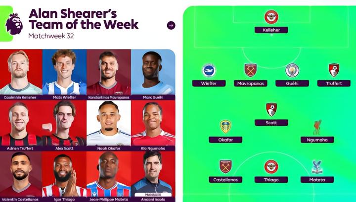 扫描下载懂球帝首页>动态> 希勒评英超本轮最佳阵容:格伊、恩古莫哈、奥卡福尔等人在列
