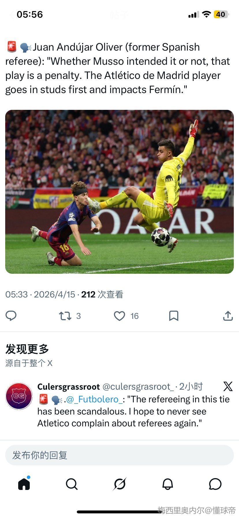 费尔明那下出血量确实挺夸张,但很明显穆索不是故意去伤人,评论区被一顿骂,我也是没招了