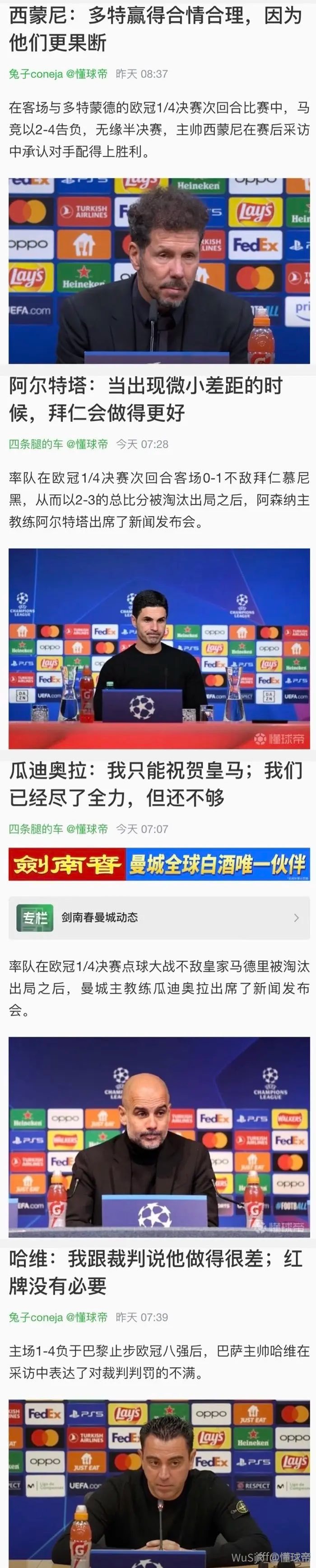 24踢巴黎、25踢国米、26踢马竞,年年不变的就是赖裁判