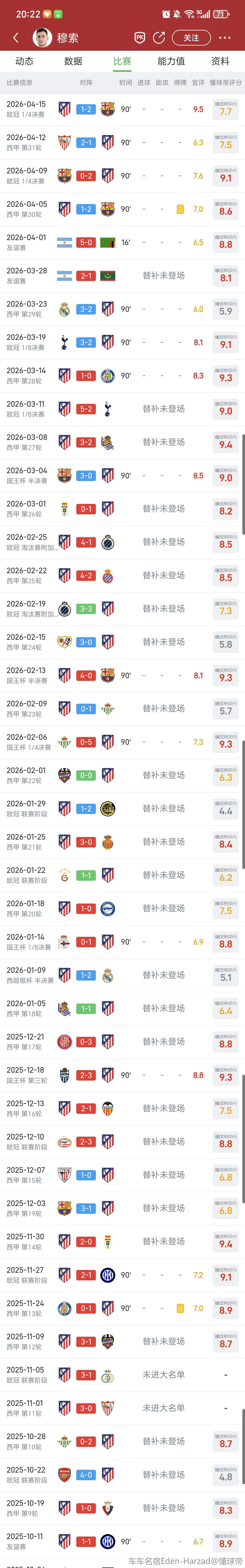 再出色有什么用,只要你踢完巴萨,评分就是C字型