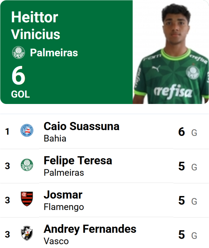 扫描下载懂球帝首页>动态> 懂球号> 2026巴西U20国甲6轮:海托尔戴帽,大绿客胜钢三色