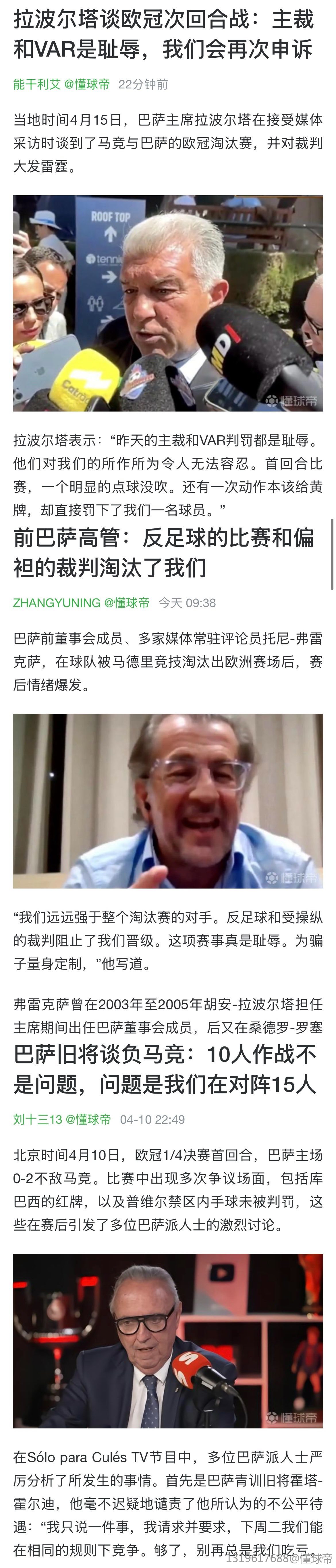 别找客观理由,年年都这样年年怪裁判。不找找自己原因呢!明年该马丁红牌了拉波尔塔提前给马丁做好预案吧!!