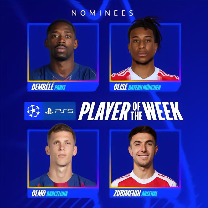 扫描下载懂球帝首页>动态> 本周欧冠最佳球员候选:登贝莱、奥利塞、奥尔莫、苏比门迪