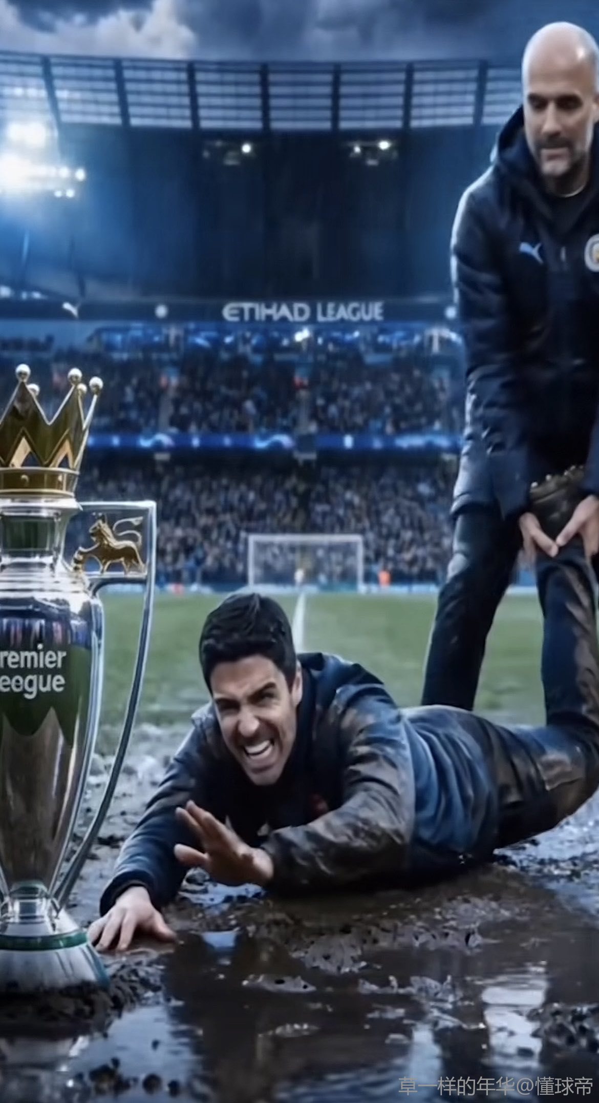 比赛临近结束时,米克尔-阿尔特塔已经因为站在场边疯狂挥舞手臂而吃到黄牌——那姿势优雅得像在跳芭蕾,仪容修饰得无可挑剔,却又带着一种世界最惨婚礼上超大婚礼蛋糕小人的惊恐表情。这时,他干脆把毛衣拉起来蒙住了眼睛,不想再看眼前的惨状。