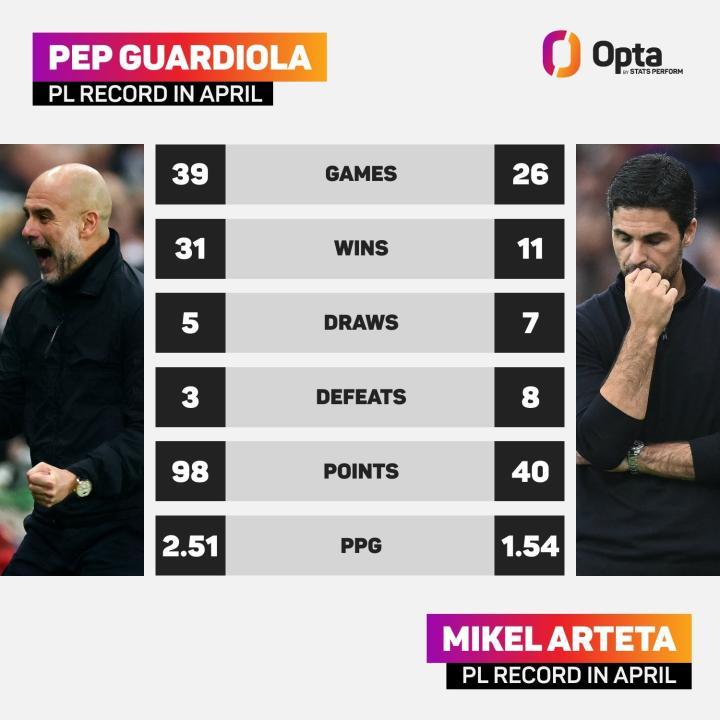 扫描下载懂球帝首页>动态> 差距明显,瓜帅4月份英超场均拿2.51分,阿尔特塔场均1.54分