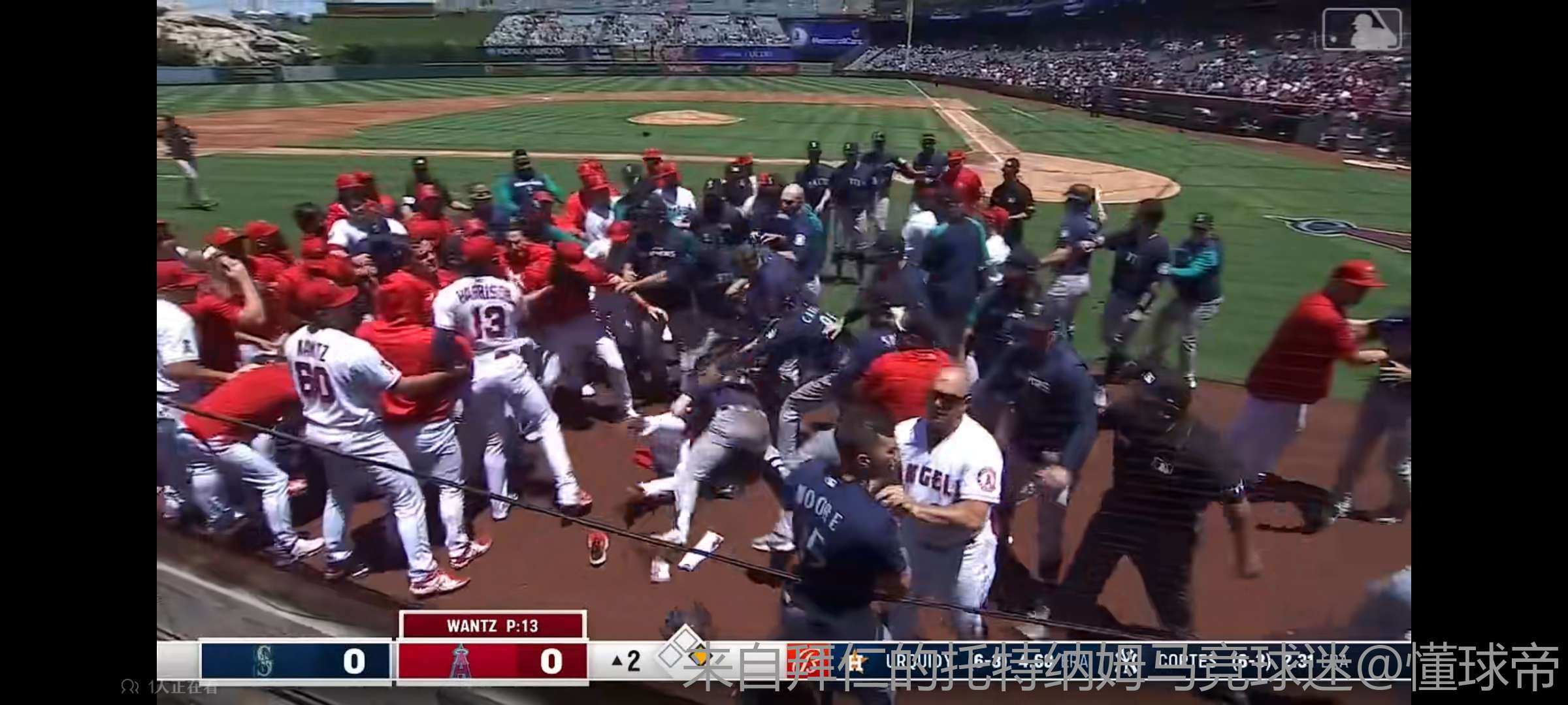 还是23年天使和水手这场记忆最深,打了两轮拳击赛,主场球迷还在打的时候一直喊 “加油天使”,最后最搞笑的是裁判把一直在劝两边停手的天使队员伊格雷西亚斯罚下场了,一哥超级生气暴怒扔了一箱瓜子冲上去骂裁判,对面水手以为还要干第三次又又又冲上来了