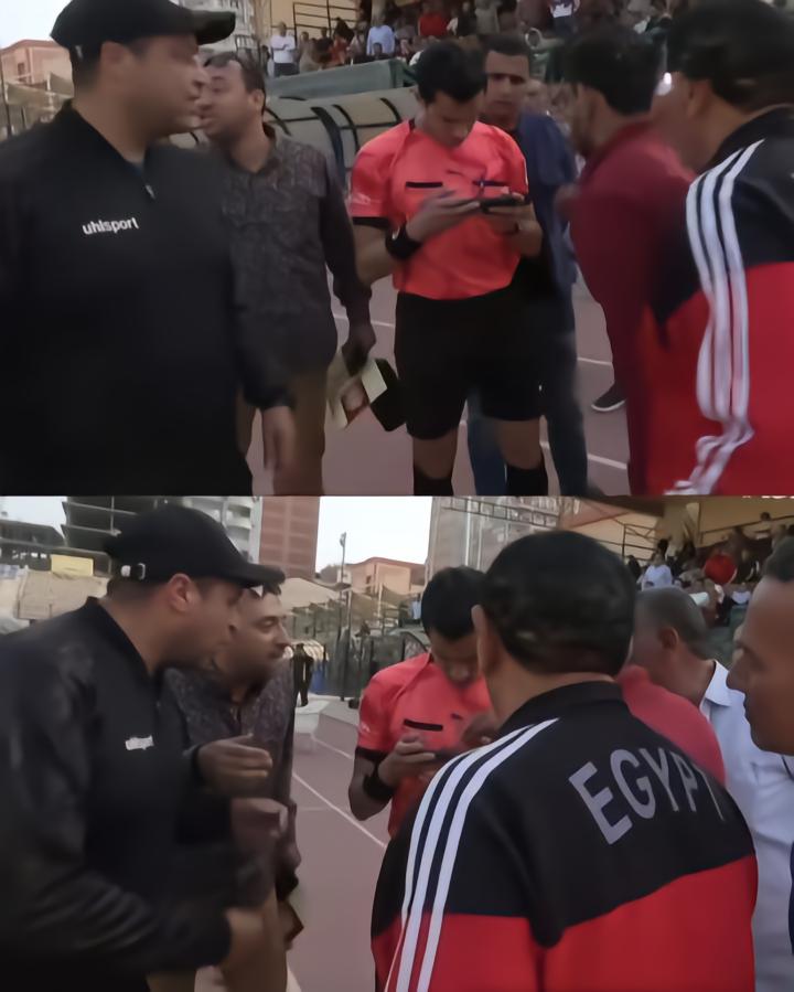 据悉,事件发生在埃及甲级联赛的一场比赛中,对阵双方为坦塔队与埃及电信。比赛期间出现争议判罚后,主裁判竟直接拿出一部手机,对关键瞬间进行“回看”,并以此作为临时“VAR”手段。