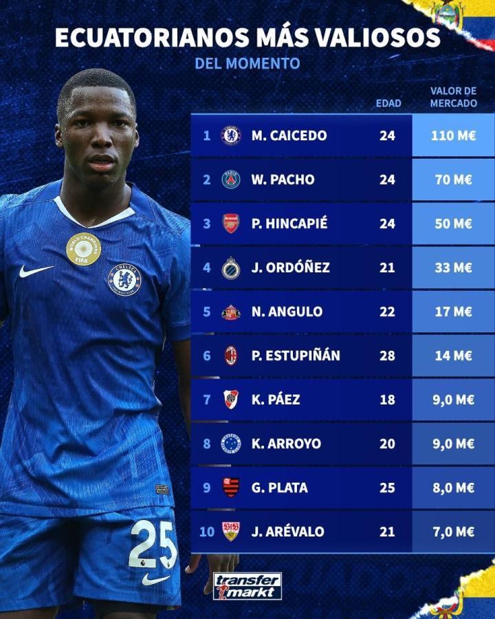 扫描下载懂球帝首页>动态> 德转列厄瓜多尔球员身价TOP10:凯塞多、帕乔、因卡皮耶前3
