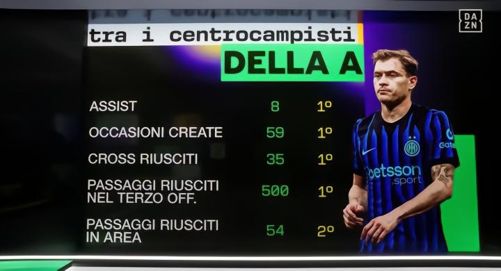 扫描下载懂球帝首页>动态> 巴雷拉四大数据位列意甲中场第一,含8次助攻以及创造59次机会