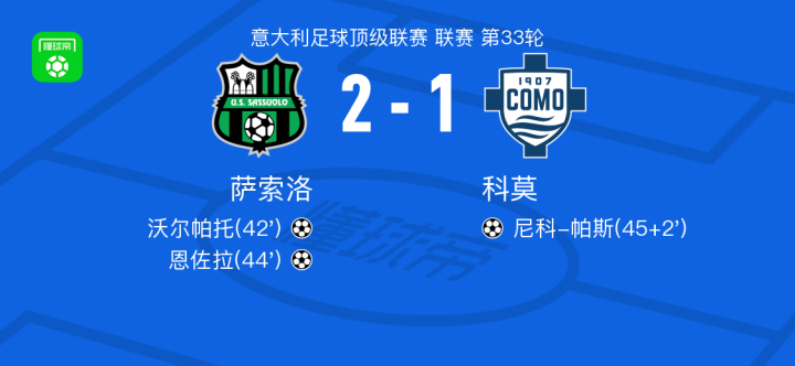 扫描下载懂球帝首页>动态> 萨索洛2-1科莫,恩佐拉建功,沃尔帕托破门