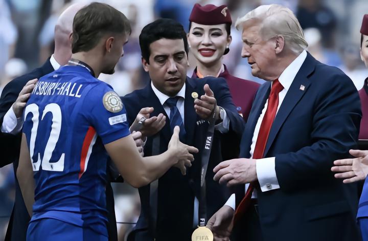 切尔西刚刚以3-0击败巴黎圣日耳曼,成为首届世俱杯冠军,而特朗普被邀请来颁发奖杯。