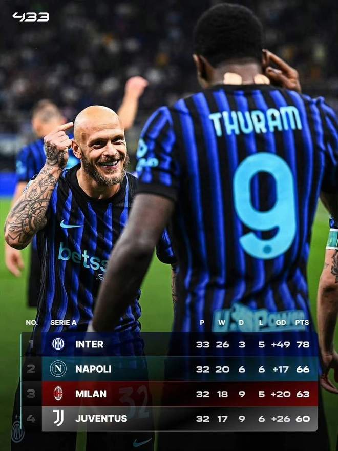 目前,国米先赛一场的情况下领先第二名那不勒斯12分,争冠形势持续向好,甚至可以说冠军在望!现在这样的局面下,国米已经完全不用再担任联赛冠军旁落,而齐沃也是全力争取让冠军尽快落袋为安!