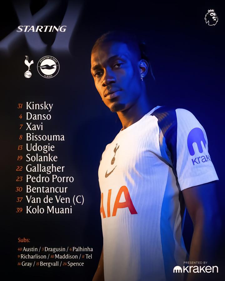 04-18 23:56热刺vs布莱顿:穆阿尼、加拉格尔首发,维尔贝克、格罗斯出战