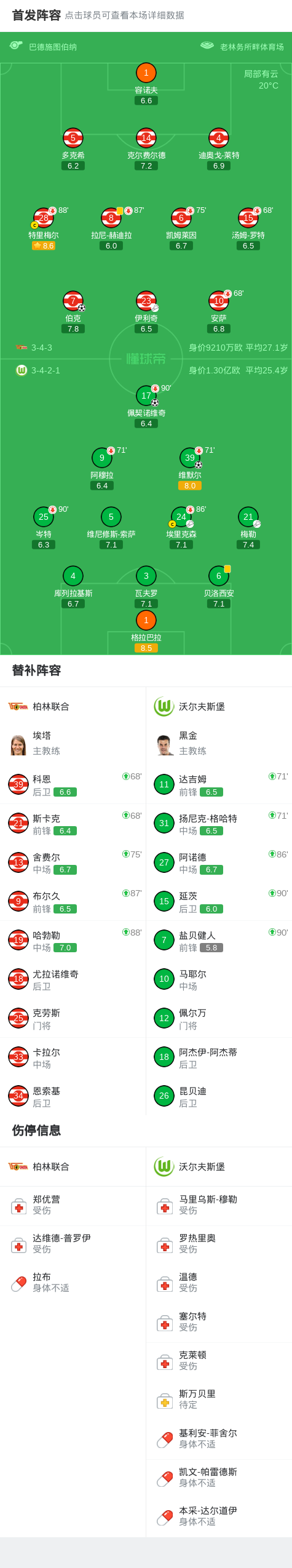 北京时间4月18日德国足球顶级联赛 联赛 第30轮,柏林联合主场对阵沃尔夫斯堡。柏林联合伯克破门。沃尔夫斯堡维默尔破门,佩契诺维奇破门。最终比分柏林联合 1-2 沃尔夫斯堡。