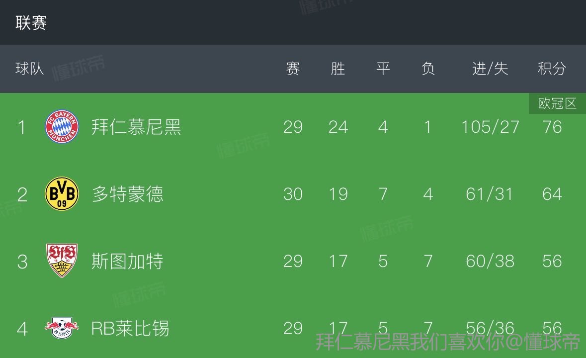 04-18 19:32多特先赛输球,拜仁明晚不败斯图加特即确定提前4轮卫冕成功