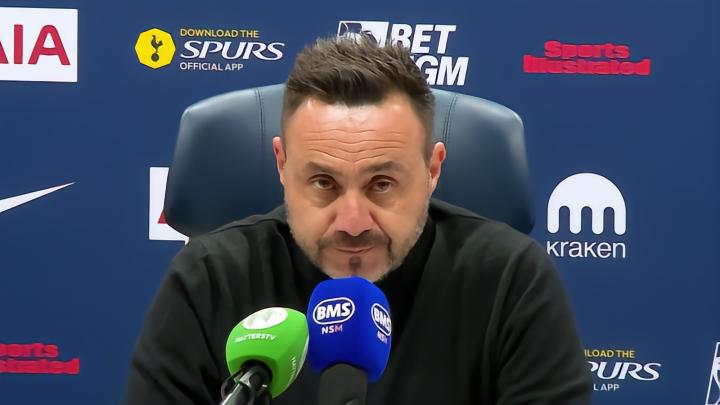 率队在英超第33轮主场2-2战平布莱顿之后,托特纳姆热刺主教练德泽尔比出席了新闻发布会。