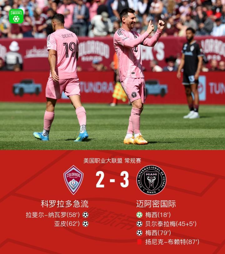 扫描下载懂球帝首页>动态> 迈阿密国际3-2科罗拉多急流,梅西双响,贝尔泰拉梅破门