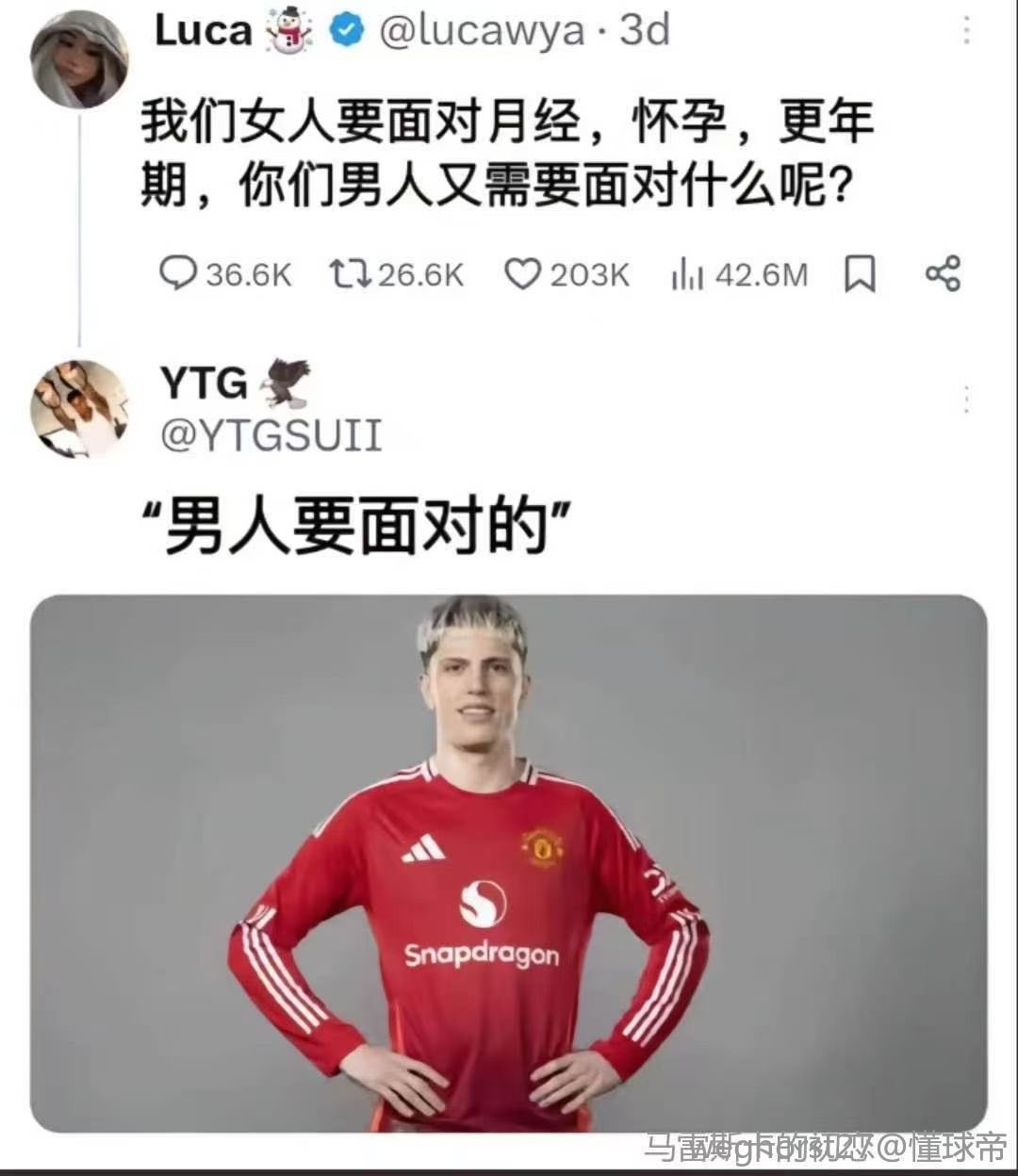 这一切发生在曼联U18队闯入青年足总杯决赛24小时之后——那支在2022年夺冠的球队正是以加纳乔为核心,令人感慨——看到这一幕其实令人唏嘘。吉姆-思韦茨本场坐在曼联替补席上,他前一天刚踢完了对阵水晶宫的半决赛两小时比赛,卡里克透露,这位小将是在那场比赛后才得知自己将首次进入对阵切尔西的一线队大名单。
