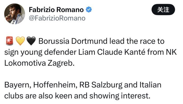 扫描下载懂球帝首页>动态> 懂球号> 罗马诺:多特蒙德领跑15岁天才中卫坎特争夺战,拜仁也有意