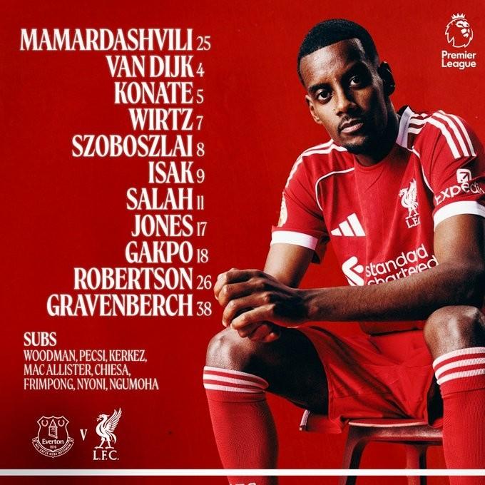 扫描下载懂球帝首页>动态> 利物浦客战埃弗顿:萨拉赫、维尔茨先发,伊萨克出战
