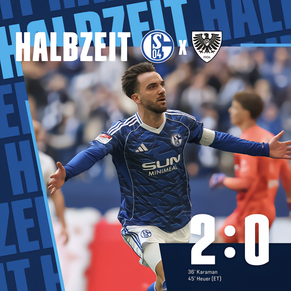 半场结束!! 沙尔克 2-0 明斯特普鲁士 砰砰两个头球,助力球队半场领先。卡拉曼头球破门,贝克尔造霍伊尔乌龙。 下半场继续加油!