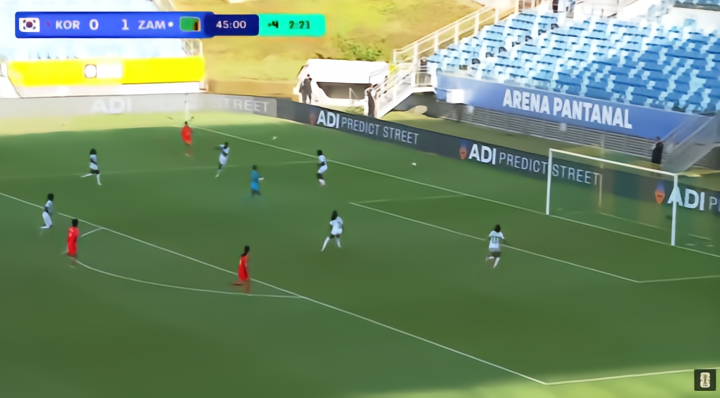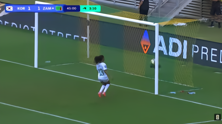 就在上半场即将以0比1结束时,韩国队终于打入扳平一球。凯西·侑珍·菲尔后场接球后顺势突破,此时赞比亚门将弃门出击。凯茜冷静地晃过门将,带球突入禁区左侧后吊门,皮球还是径直飞入了空门。进球后,她跪地掩面而泣,因为对于这位混血姑娘来说,上次进球还是2年前,这个进球她等待了太久。半场结束,双方1-1战平。