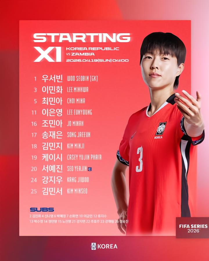 附:韩国女足2026FIFA系列赛对赞比亚名单(4.19)