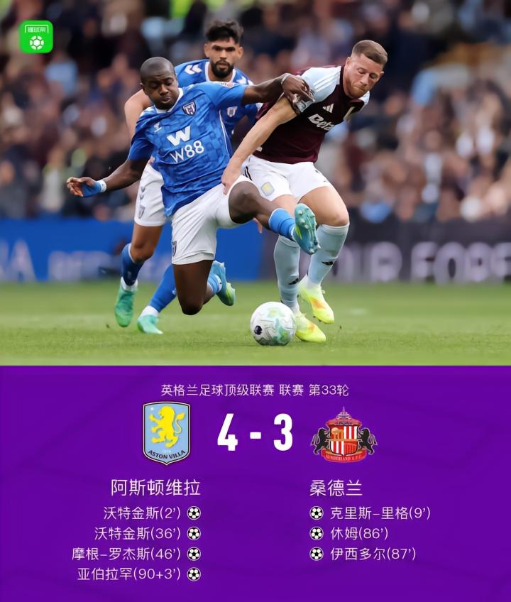扫描下载懂球帝首页>动态> 跌宕起伏!维拉4-3桑德兰,沃特金斯2射1传,亚伯拉罕绝杀