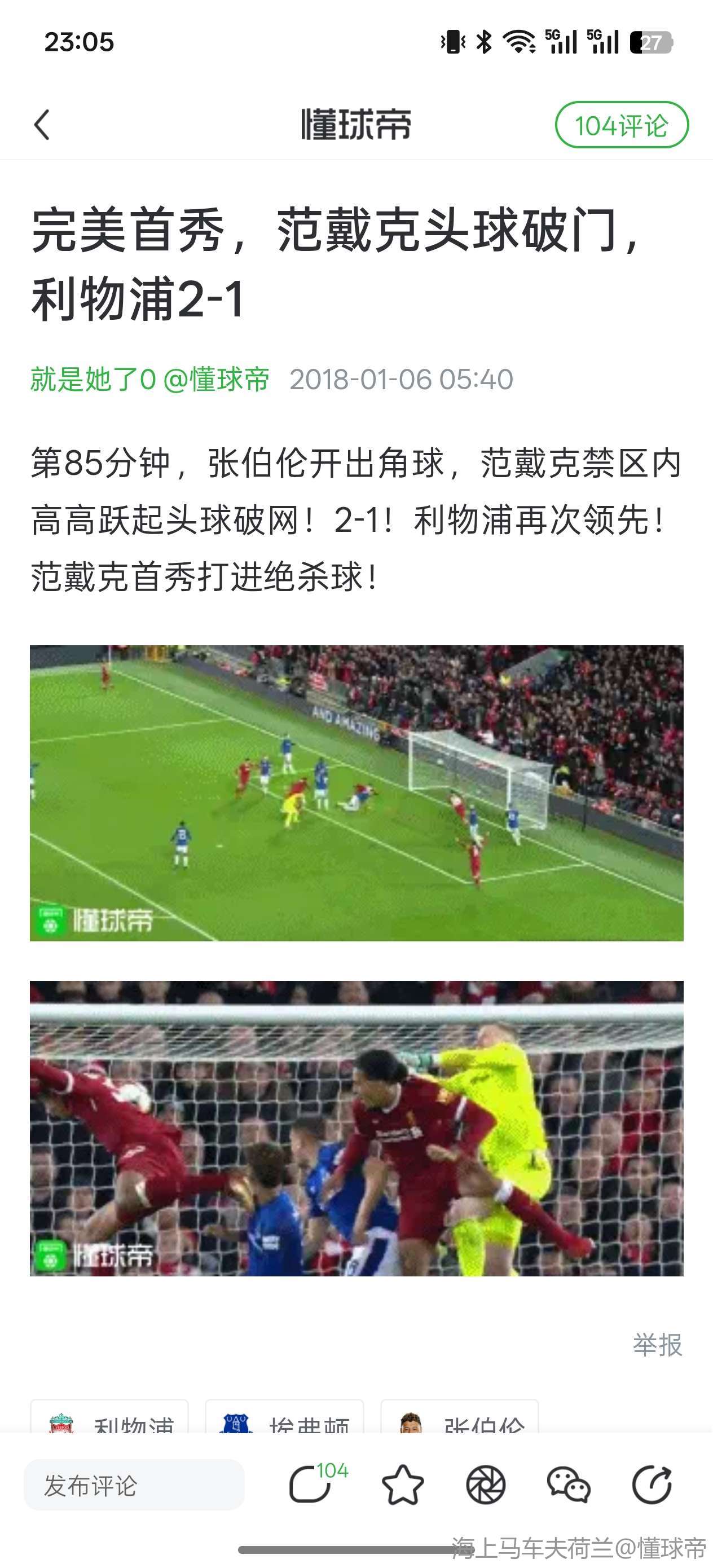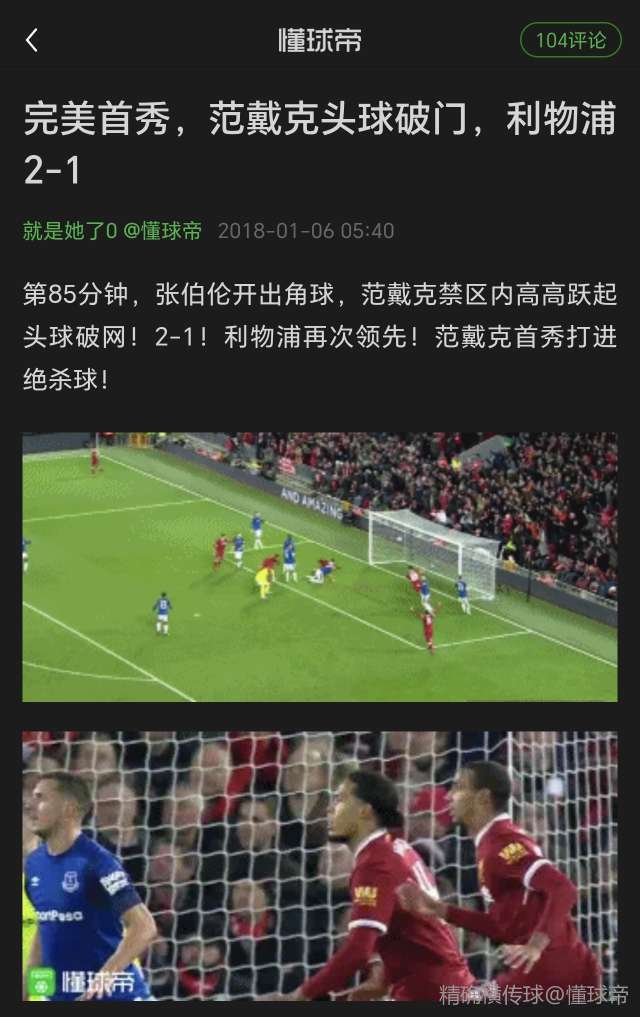 04-19 23:15范戴克头球绝杀埃弗顿,詹俊激动发文:军中铁卫,舍他其谁!