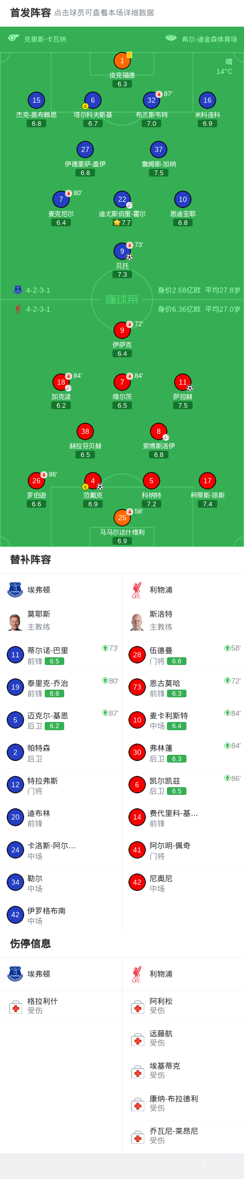 最后可以说两队都拼的很惨烈,都有人伤退,被担架抬出,埃弗顿中卫布兰斯韦特和利物浦二门马马尔达什维利,希望不要有大碍吧
