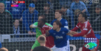 皮克福德准备出去摘球的时候这是被自己的后卫往后拽了一把?