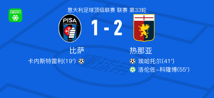 懂球帝首页>动态> 热那亚2-1逆转比萨,洛伦佐-科隆博点射、埃哈托尔破门