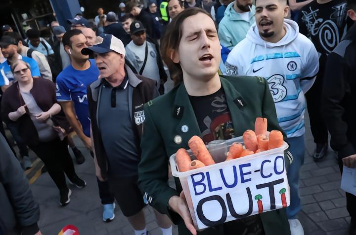 扫描下载懂球帝首页>动态> 切尔西球迷手持胡萝卜抗议BlueCo,它象征着“空头支票”