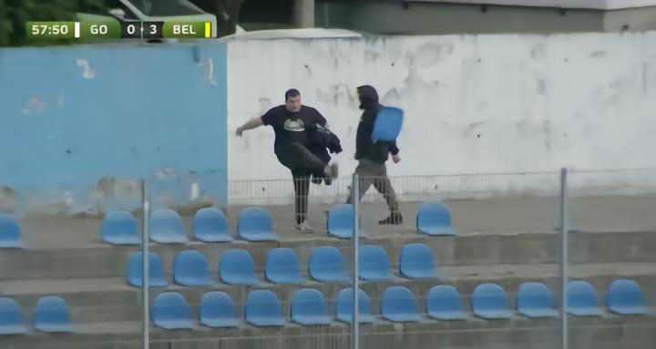 当贝尔廷齐打入第三球时,一名戈里察球迷气得把球场座椅一脚踹飞。由于整座球场空空荡荡,他立刻引起了裁判和球员的注意。