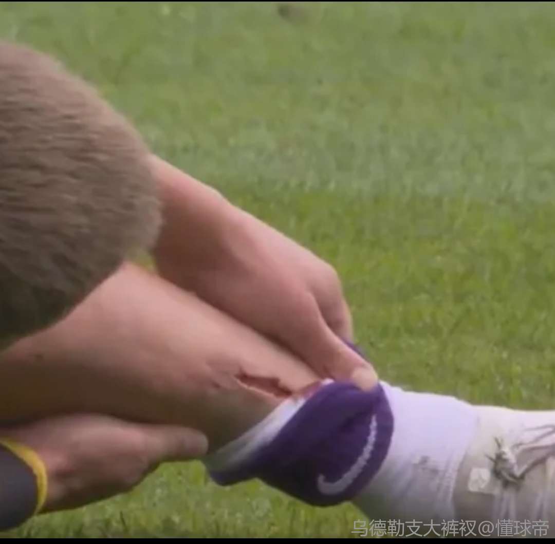 很好奇是护腿板割开的吗,如果不是呢能是啥东西割这么犀利的口子,鞋钉造成的伤势也不会这么光滑啊