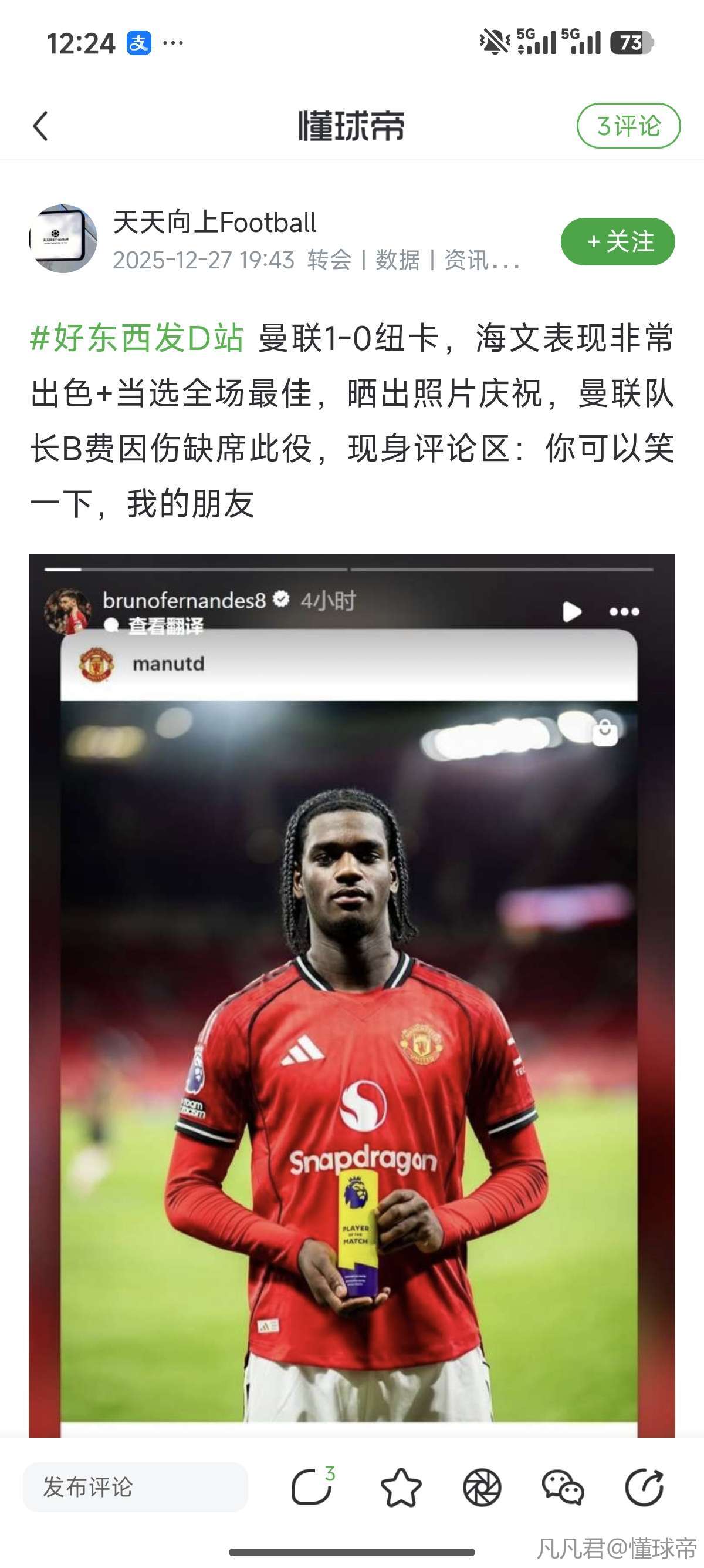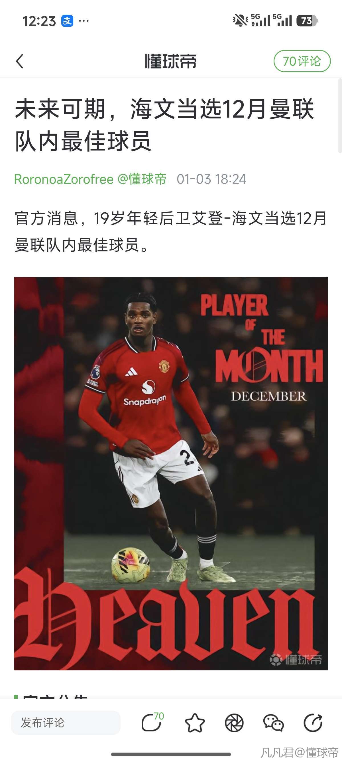 海文拿过英超官方全场最佳,曼联队内12月最佳,给他机会他肯定会表现不错的。