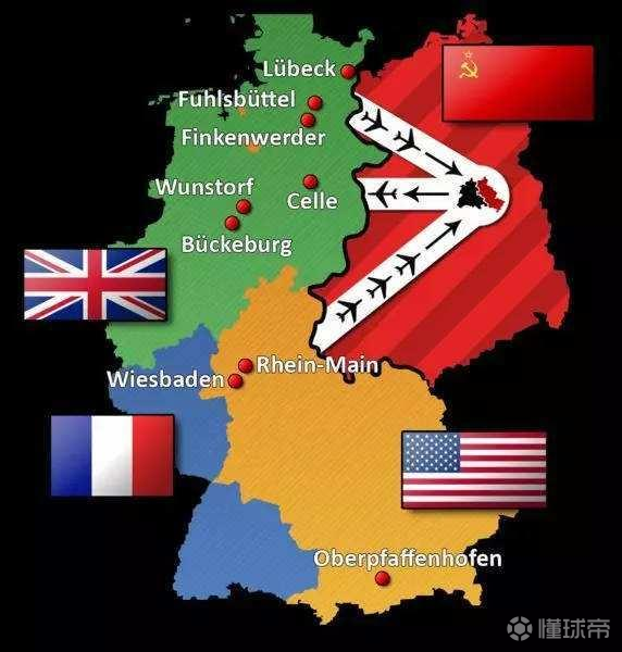 上文我们说到,分区占领的不仅有德国,还有首都柏林。柏林全境在苏占区(民主德国)境内,被民主德国所包围,但内部,却被美英法苏四个超级大国占领。