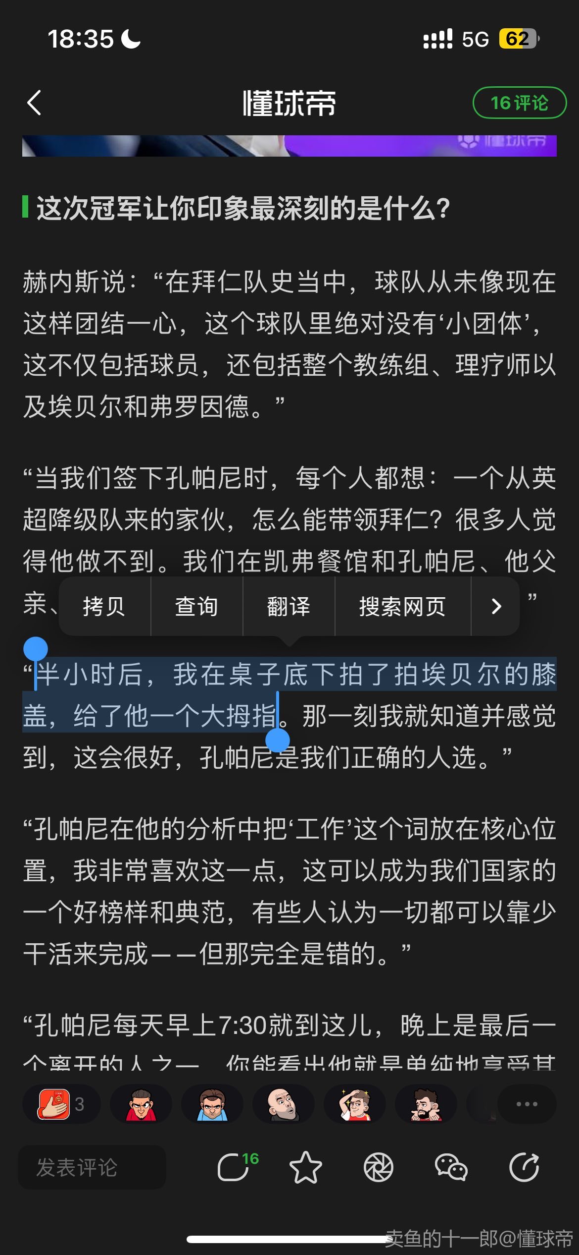 给小老头哄成歪嘴了。目前孔帕尼的人际关系对上对下都处理的很得当,之前的图赫尔是对上对下都是矛盾重重。而纳格尔斯曼是内部山头林立。弗里克的情况最为复杂,对下做的足够好,球员都夸他如父亲一般的角色,但是对上,,,不过也得说厂长之前选的两位管理人员也太抽象了点。。。