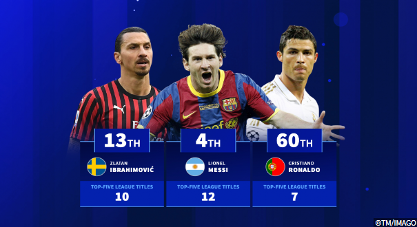 五大联赛夺冠次数最多11人阵容:梅西领衔,穆勒、吉格斯在列