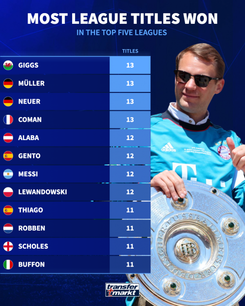 扫描下载懂球帝首页>动态> 懂球号> 诺伊尔追平纪录,联赛13冠创造历史!