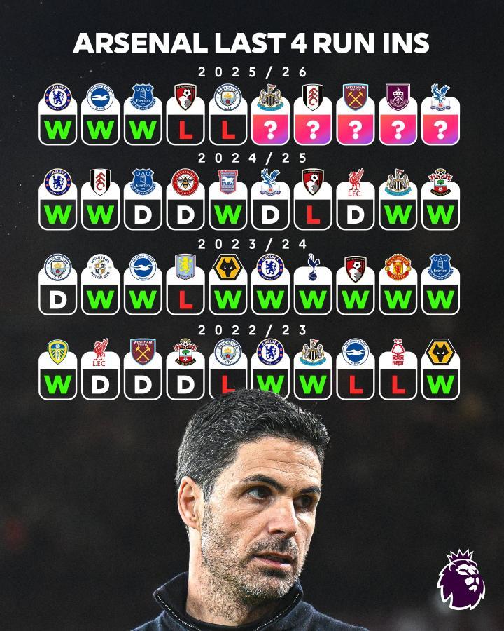12胜3平,阿森纳本赛季对阵积分榜下半区球队胜率80%