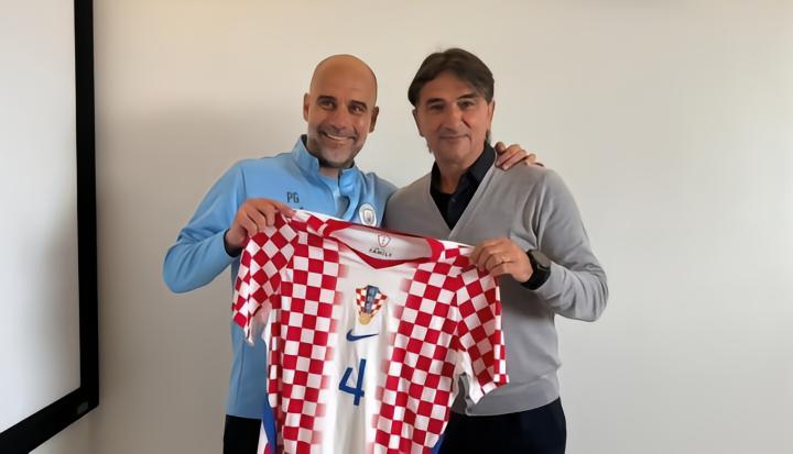 扫描下载懂球帝首页>动态> 由达利奇带队的克足协造访曼城看望格瓦和科娃,瓜迪奥拉接见