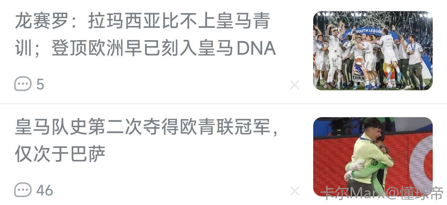 扫描下载懂球帝首页>动态> 龙赛罗:拉玛西亚比不上皇马青训;登顶欧洲早已刻入皇马DNA