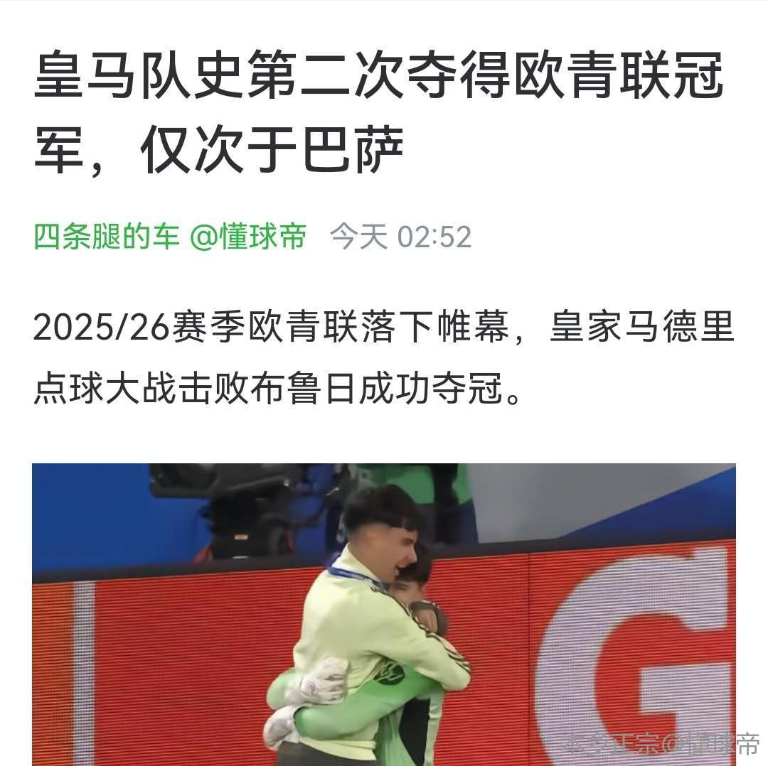皇马队史第二次夺得欧青联冠军,仅次于巴萨