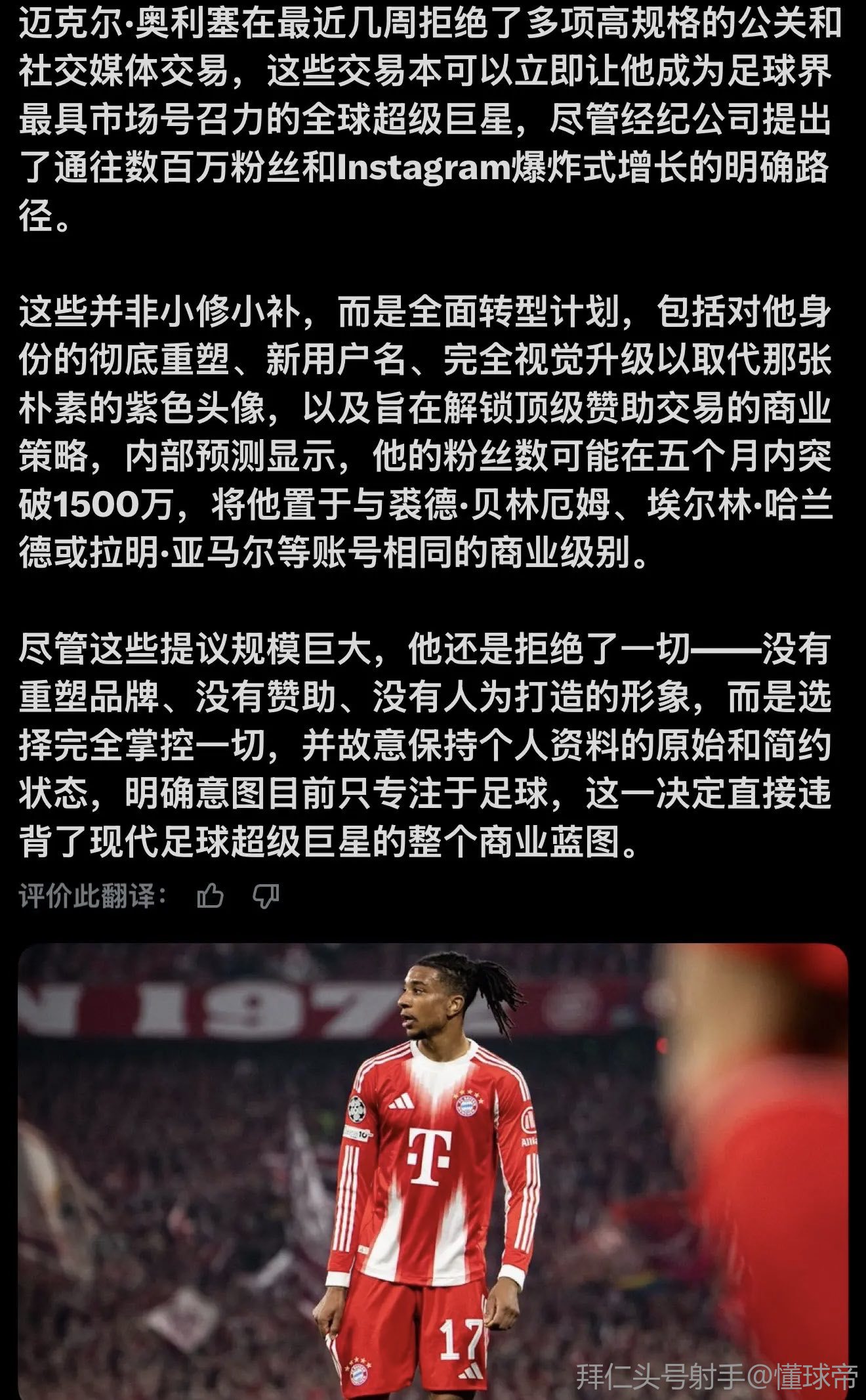 皇马名宿开始造势拜仁的奥利塞,有啥说法