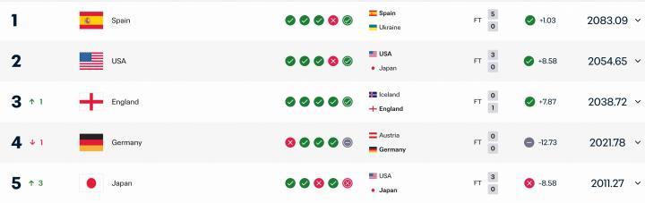 在亚洲杯上,中国女足闯进四强,半决赛1-2不敌澳大利亚无缘决赛。日本女足凭借亚洲杯夺冠的成绩上升三位排名第五,西班牙和美国仍旧排在前二。