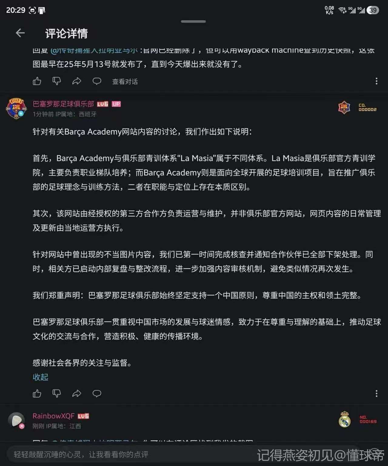 什么叫巴萨回应?你一个b站评论回复也能代表巴萨官方了?