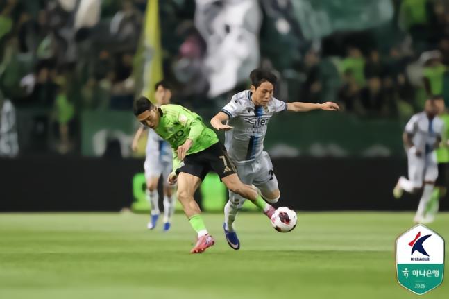 我们再看K1联赛第九轮的比赛。2026赛季,全北现代汽车在过往的主场只输了一场,那就是揭幕战2-3输给升班马富川FC1995的比赛!而4月21日,全北现代汽车在主场又翻船了!而且输的又是升班马。而这次输球,也宣告全北11年在主场对仁川的不败纪录作古!